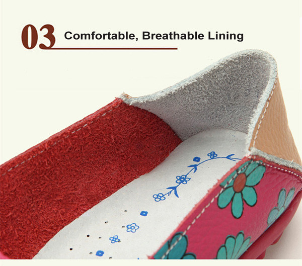 Big Size Women Flower Floral Leather Loafers Moccasins Flats Soft Ballet Shoes Round Toe Flats