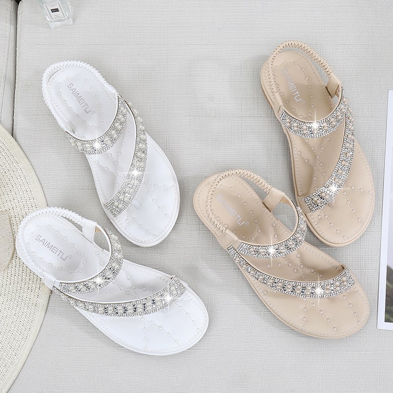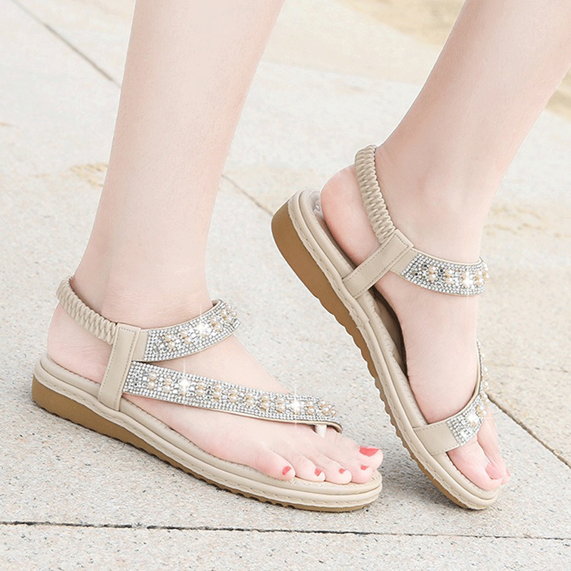 Bohemian Rhinestone Clip Toe Flip Flops Soft Bottom Flat Sandals