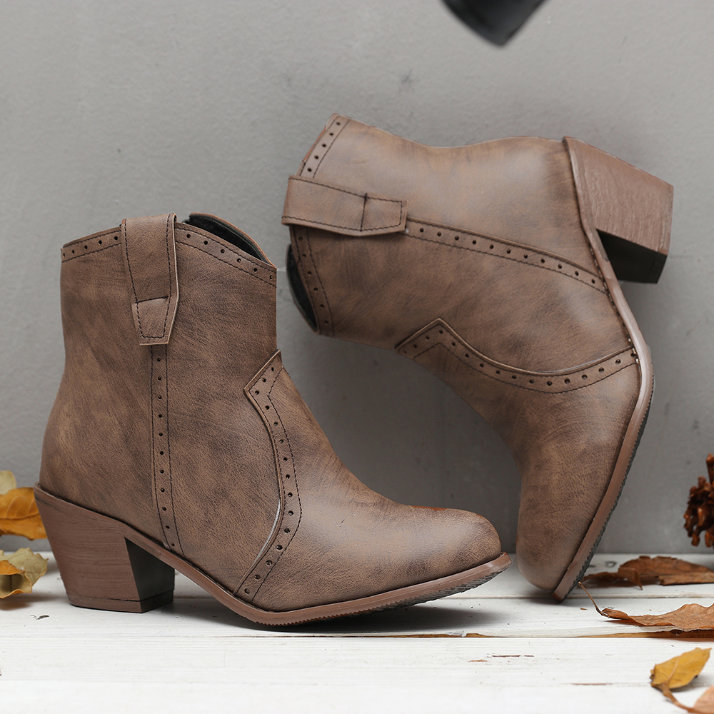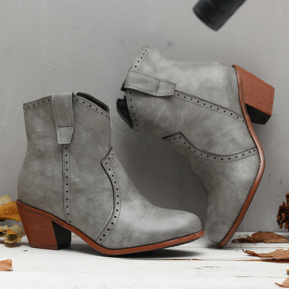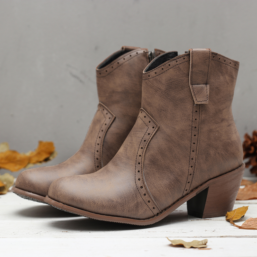 Women Casual Retro Pointed Toe Zipper Chunky Heel Ankle Boots