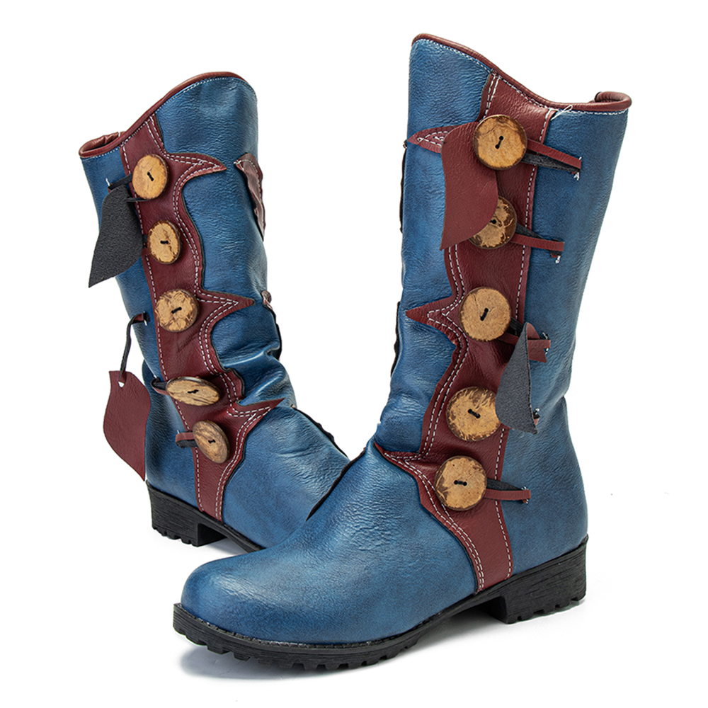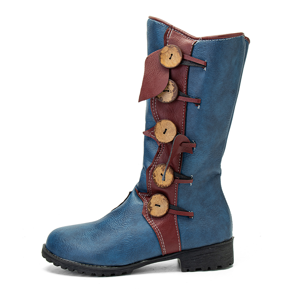 Women PU Leather Round Head Waterproof Non-slip Wear Resistant Mid-calf Boots