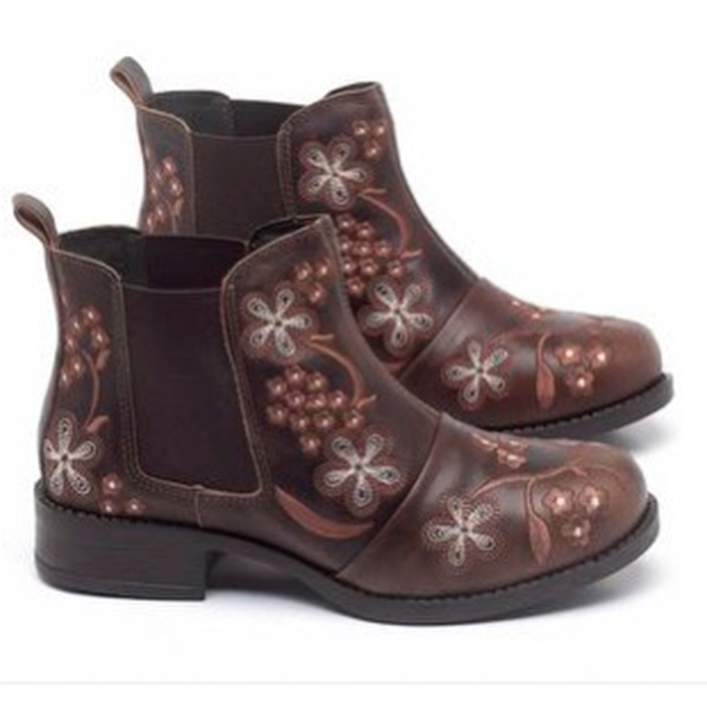 Women Retro Floral Embroidery Comfy Wearable Chelsea Ankle Boots