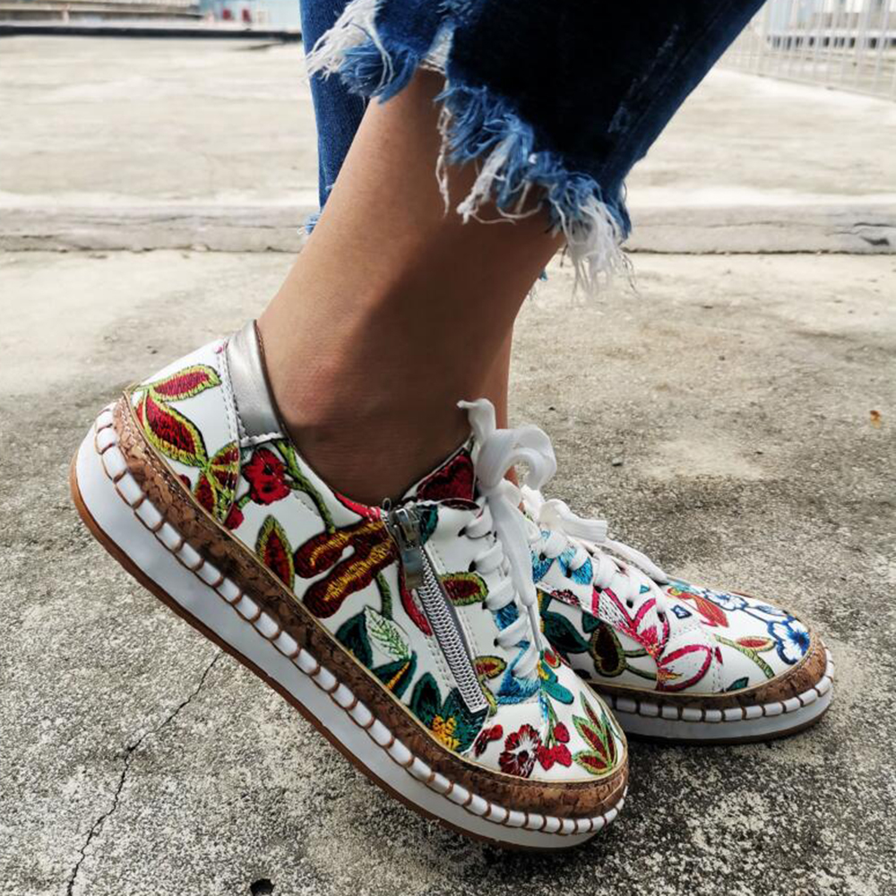 Women Folkways Printing Comfy Non Slip Casual Chunky Flats Shoes
