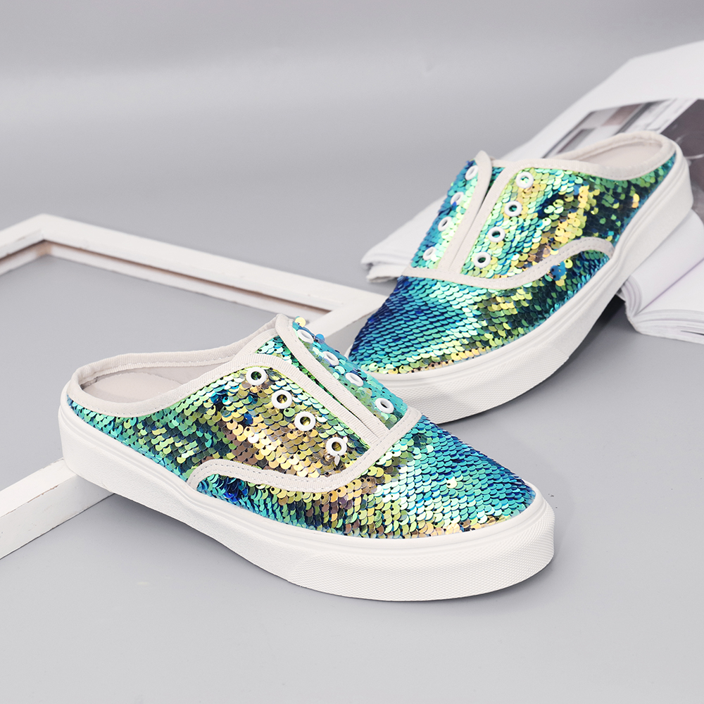 Women Sequined Decor No Rope Comfy Wearable Slippers Flats