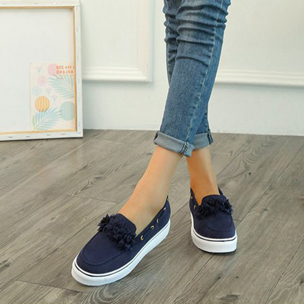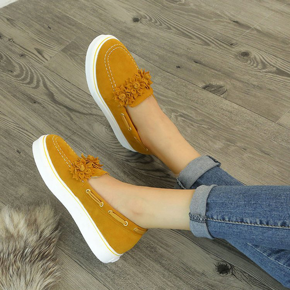 Women Suede Flower Comfy Lining Simple Solid Casual Loafers Shoes