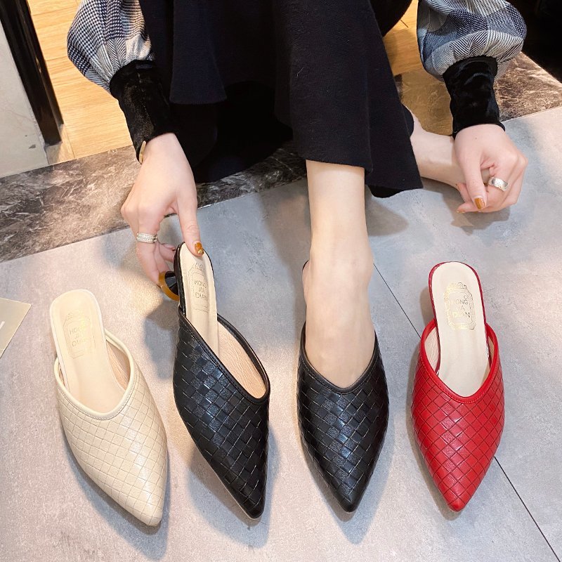 Women Casual Pointed Toe Braided Backless Cone Heels Shoes