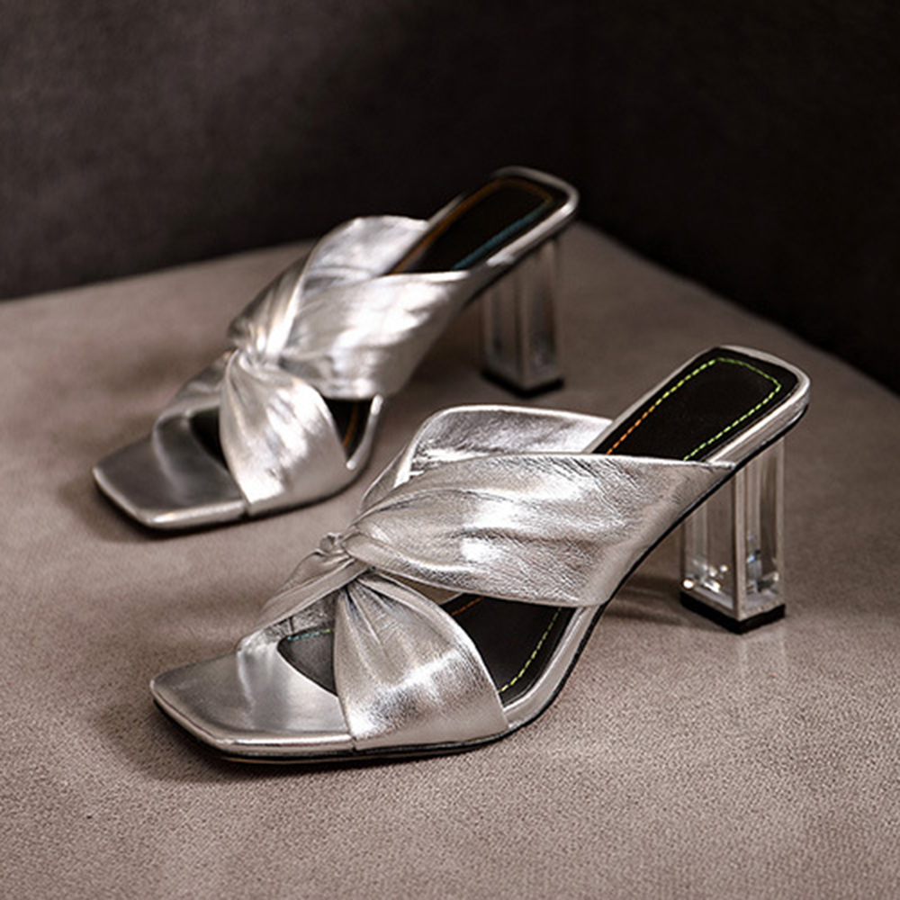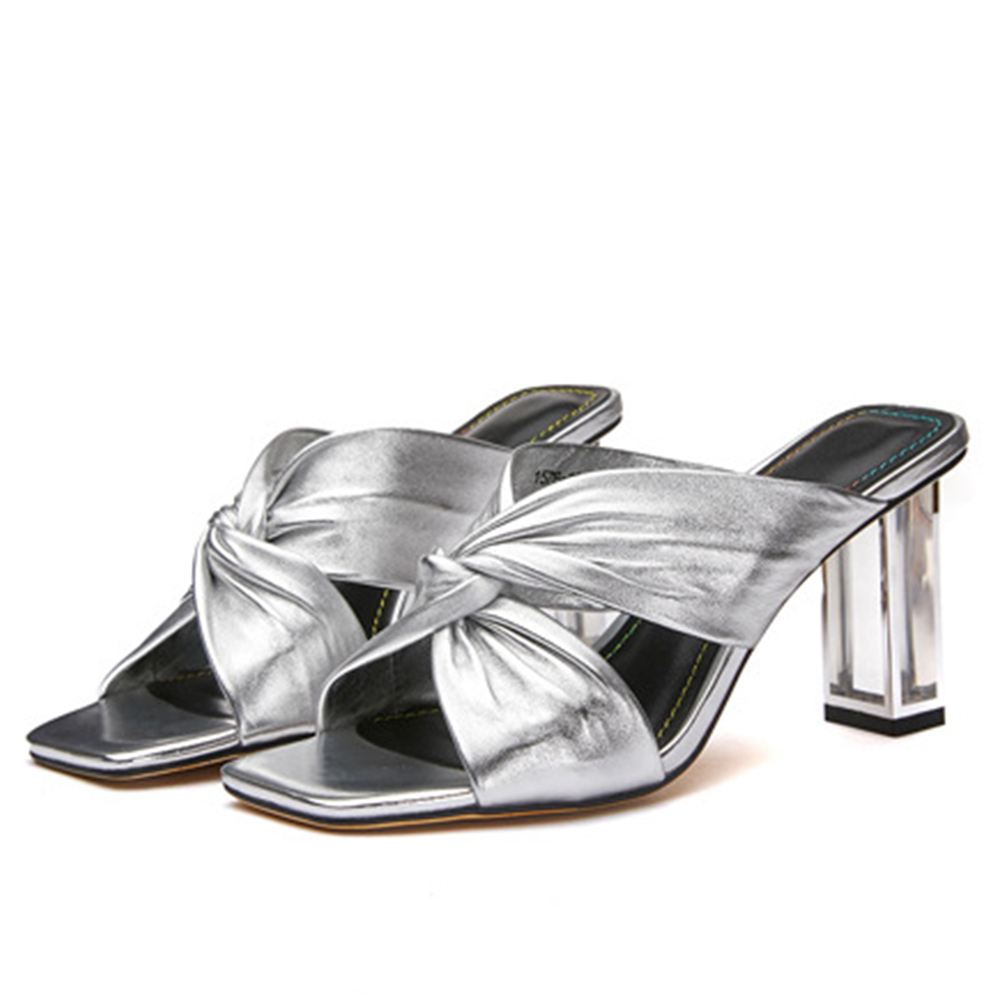 Women Comfy Gold & Silver Clear Heeled Slippers