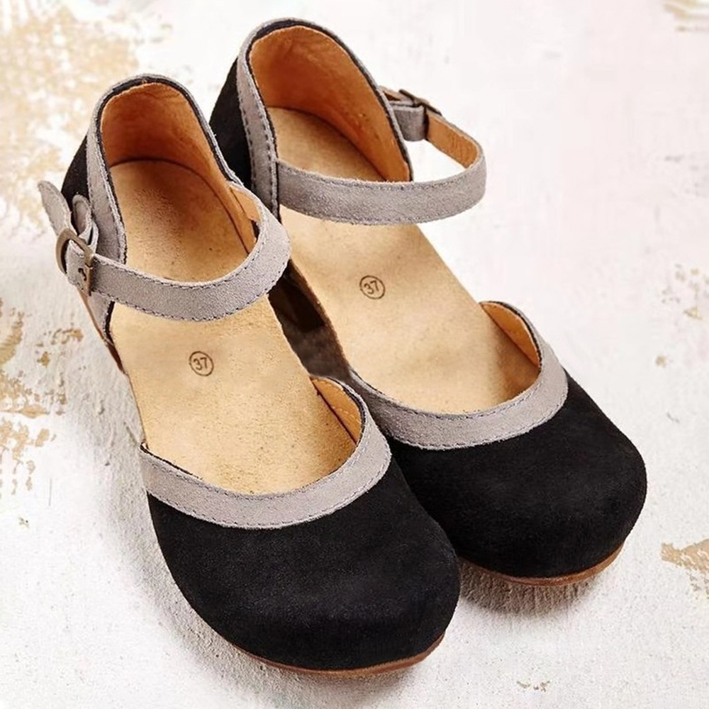 Women Round Toe Buckle Block Heel Casual D'Orsay Pumps