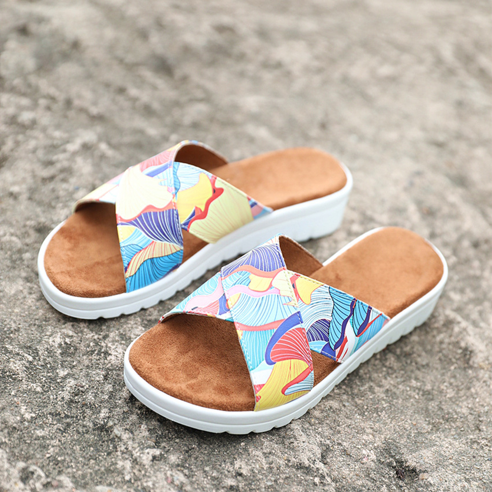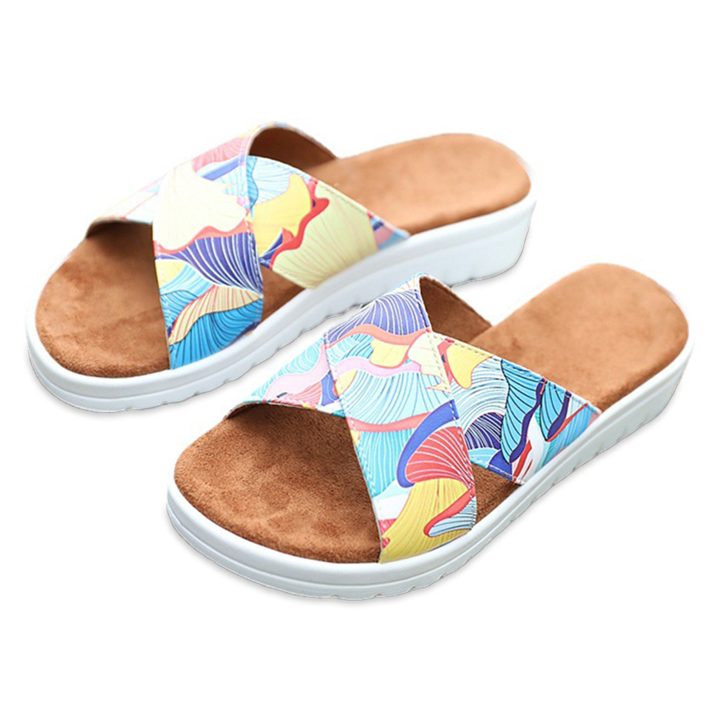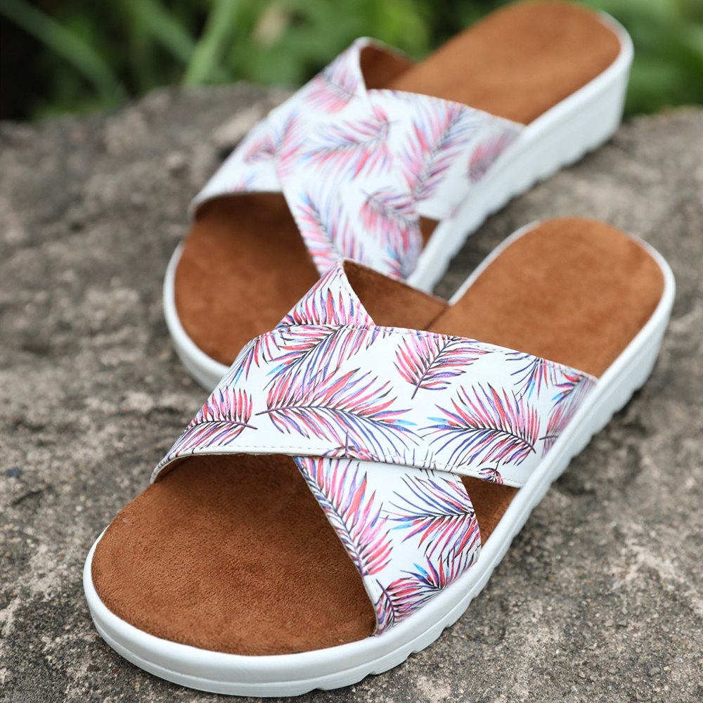 Women Casual Comfy Summer Vacation Colorful Leaf Pattern Outdoor Slippers