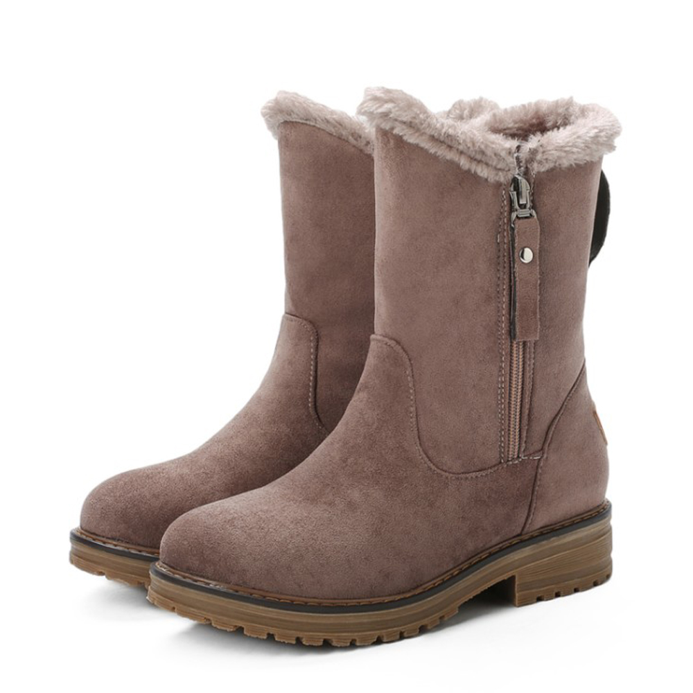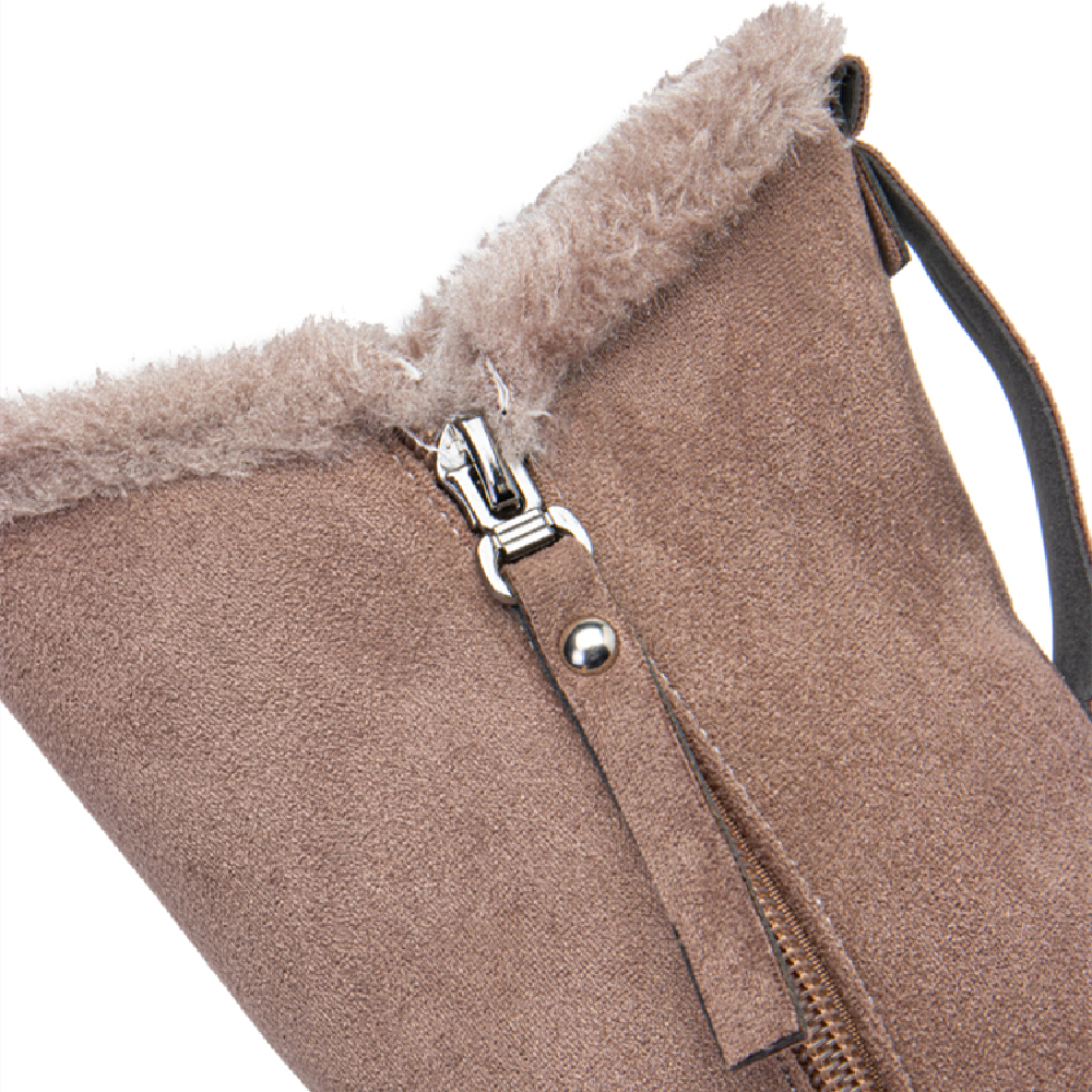 Women Casual Suede Round Toe Side Zipper Flat Snow Boots