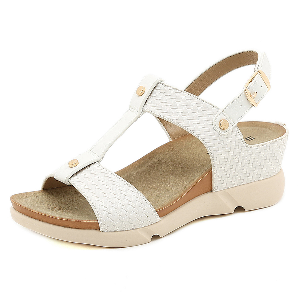 Women Casual Vacation Comfy Woven Design T-Strap Wedges Sandals