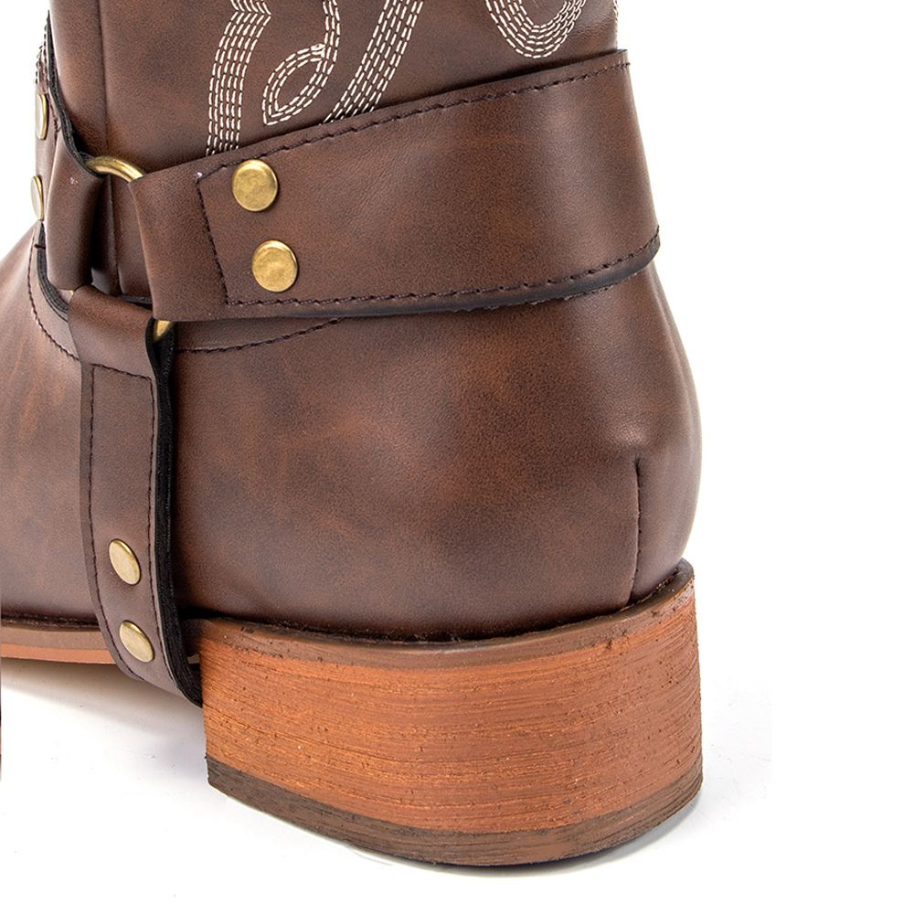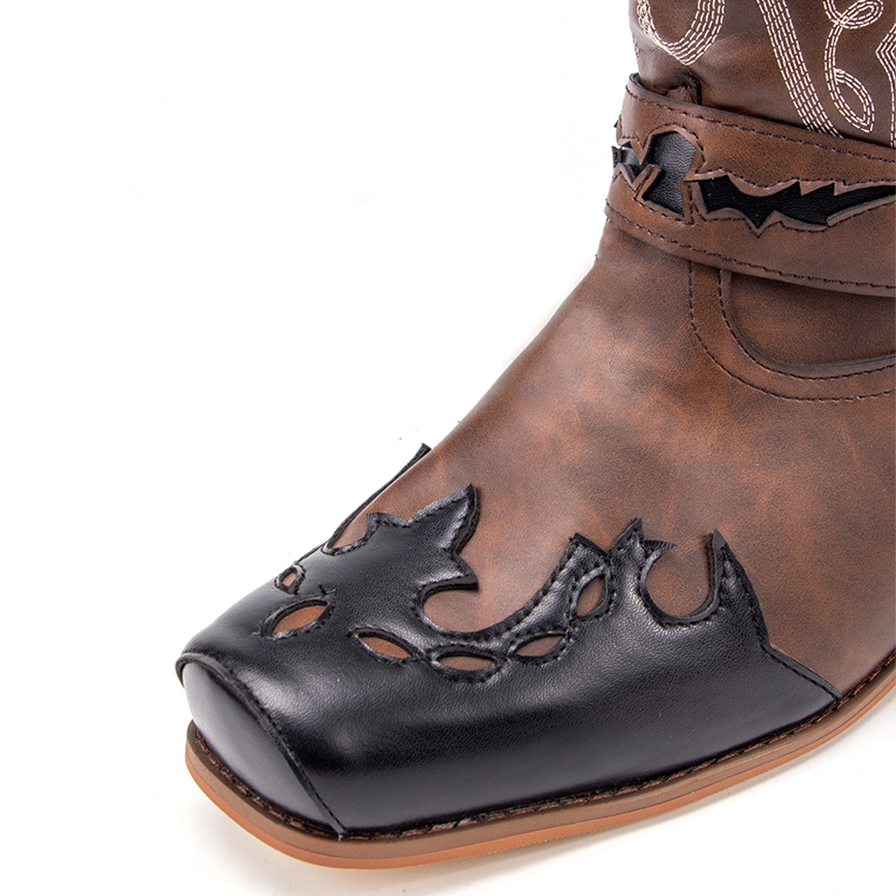 Women Embroidered Splicing Metal Buckle Mid Calf Boots