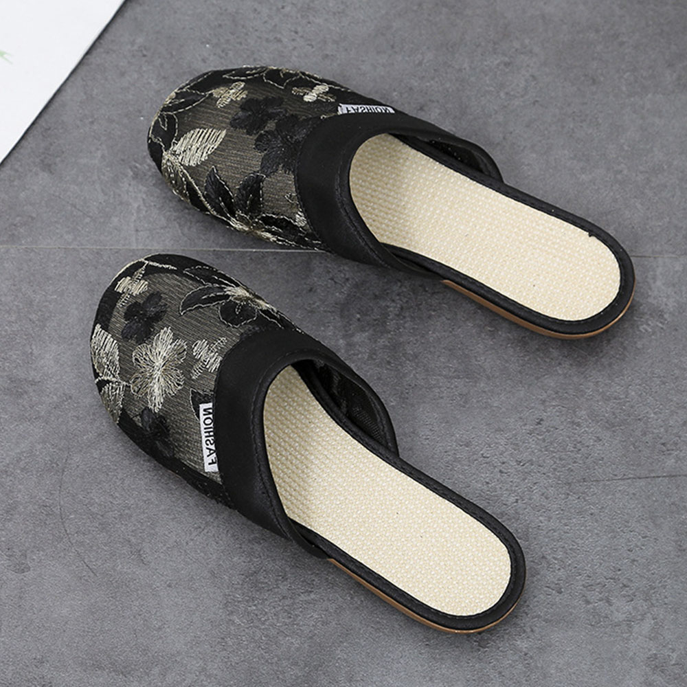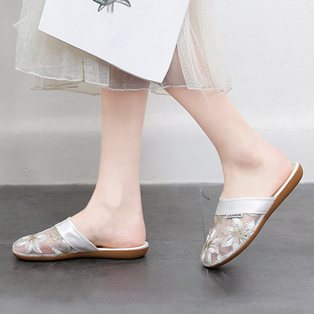 Women Floral Flower Pattern Hollow Out Comfy Closed Toe Casual Flat Slipper