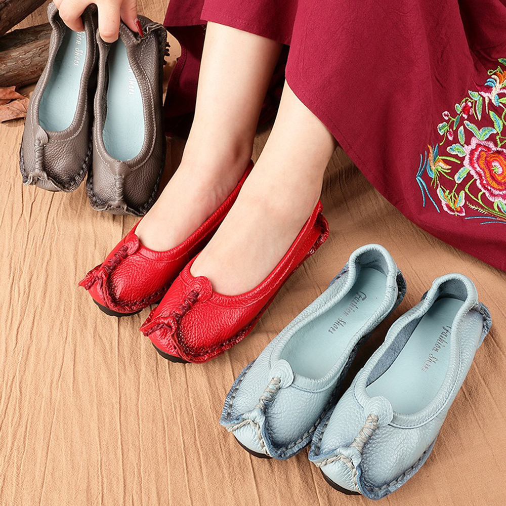 Women Folkways Stricing Comfy Breathable Casual Leather Loafers