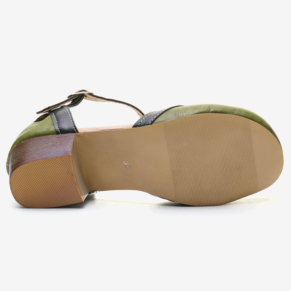 Women Hollow Out Color Stitching Plus Size Buckle Chunky Heel Casual Pumps