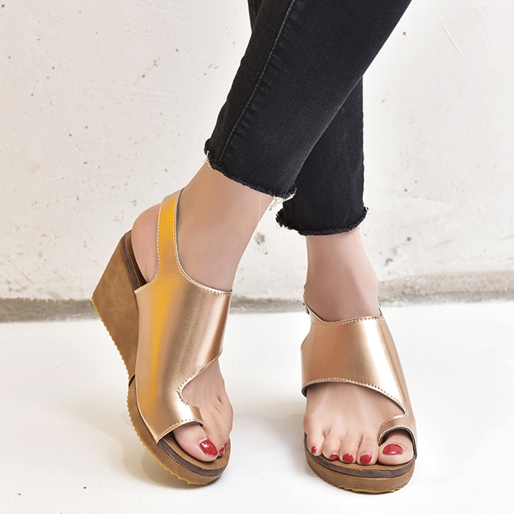 Women Large Size Buckle Strap Clip Toe Wedges Sandals