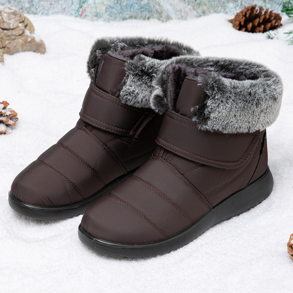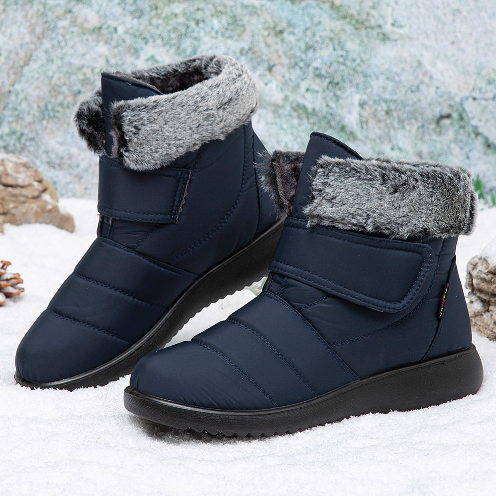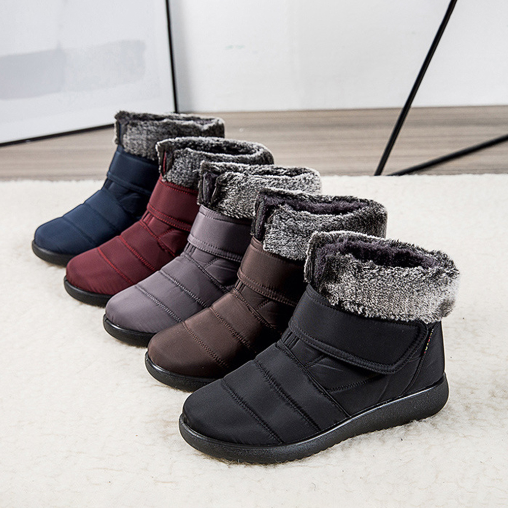 Women Large Size Warm Lined Hook Loop Plus Velvet Ankle Snow Boots