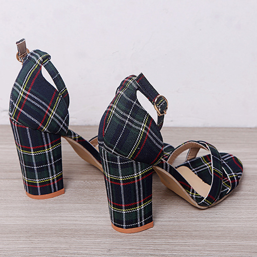 Women Plaid Cross Strap Lattice Decor Buckle High Heel Sandals