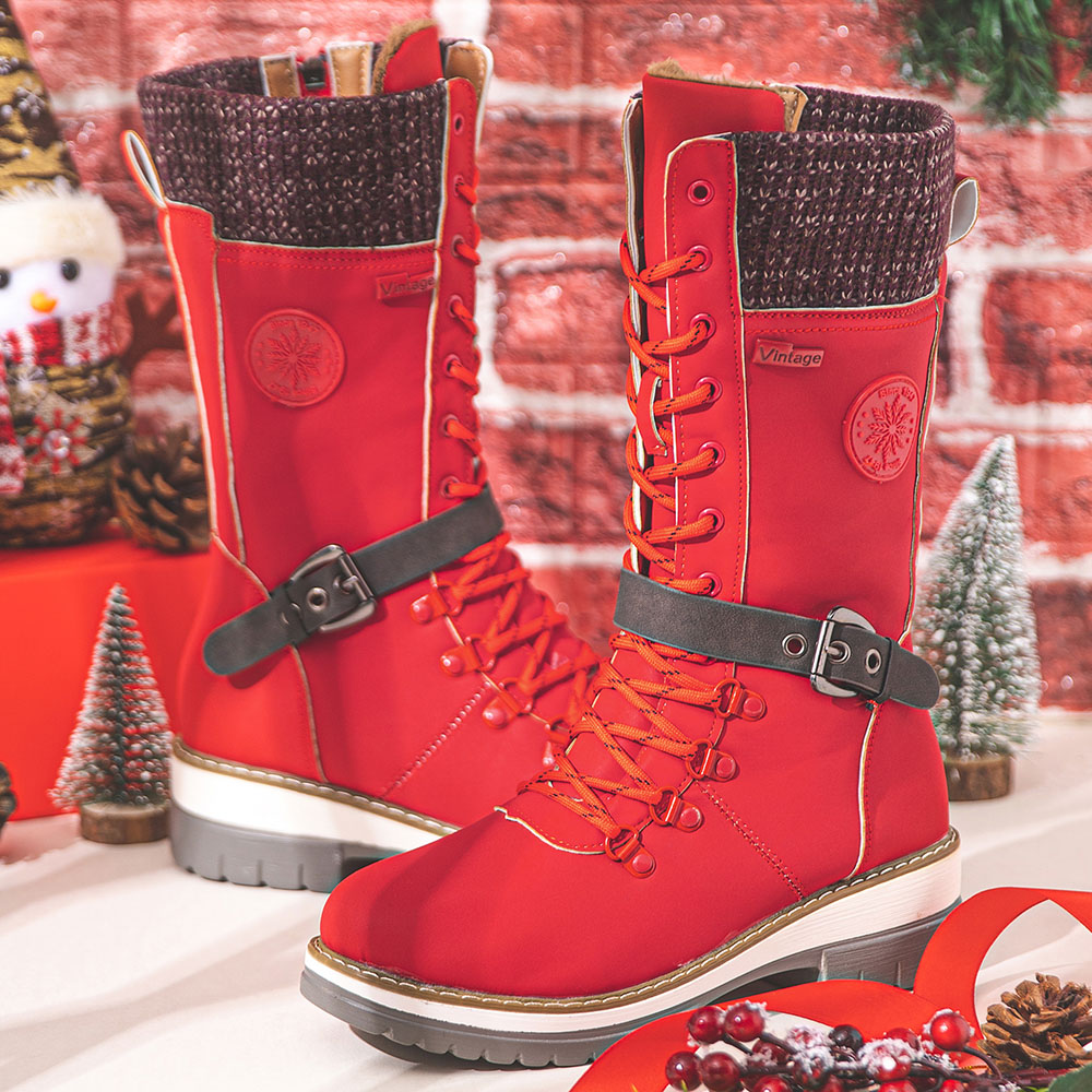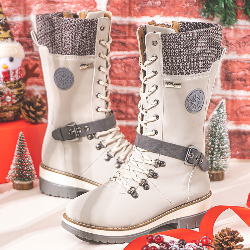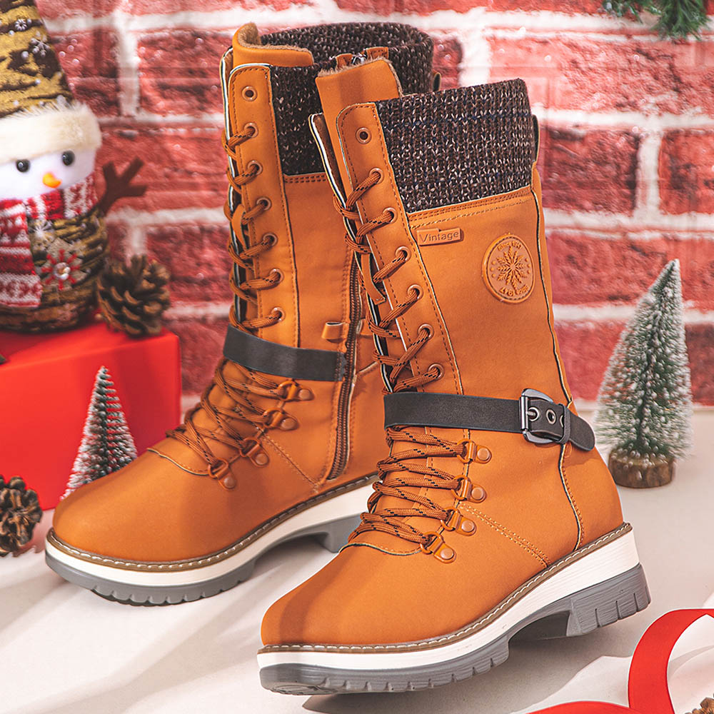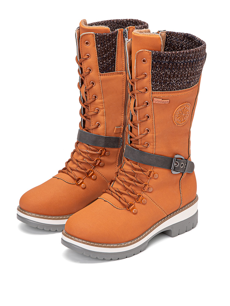 Women Retro Buckle Solid Color Side-zip Casual Knitted Shoe Tube Mid-Calf Snow Boots