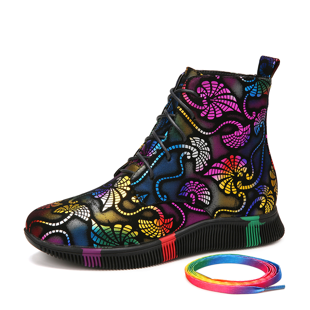 Women Stytish Colorful Graffiti Lace Up Short Calf Combat Boots