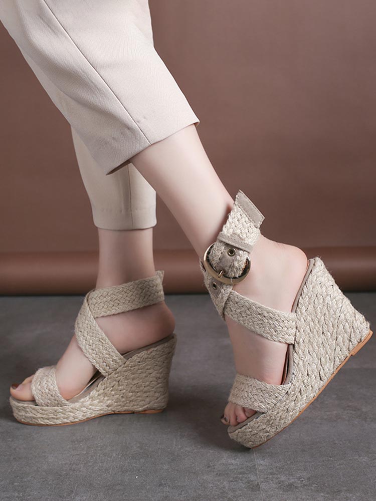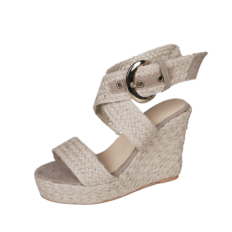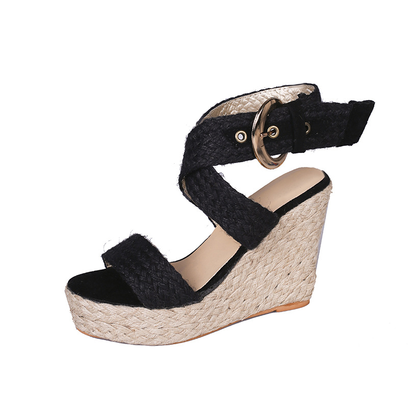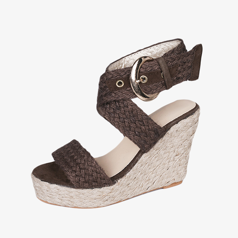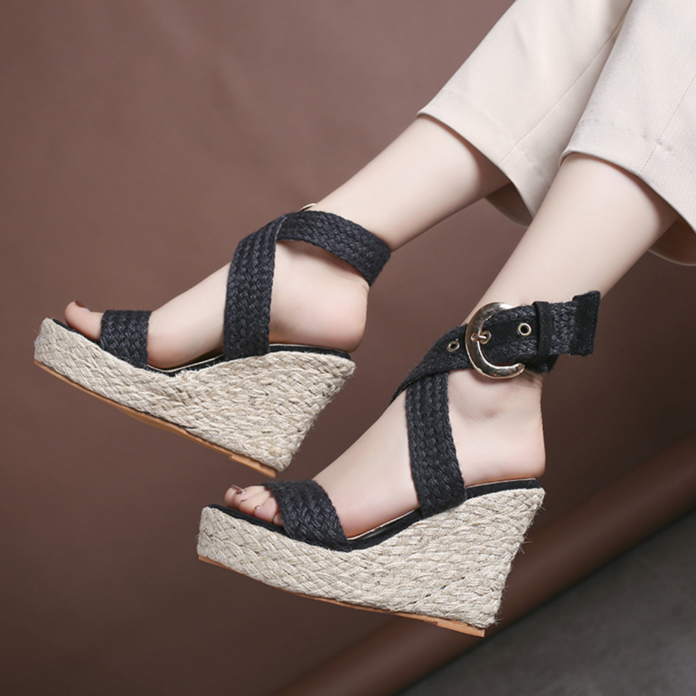 Women Wedges Heel Braided Espadrille Ankle Cross Buckle Strap Sandals